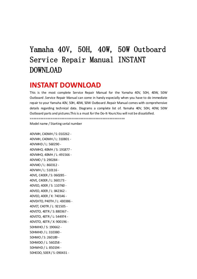 Yamaha 40 v, 50h, 40w, 50w outboard service repair manual instant dow…