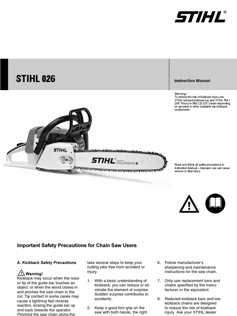 026 Stihl Service Repair Manual - Free Stihl 024 026 Chainsaw service repair manual Download By manual REPAIR Manual 0 Comments Full service / repair manual for your Stihl 024 and 026 chainsaw.. repair service manual for stihl 024 024av 026 ----- manual 10 - $16.95. for sale is a service repair manual 92 pages for your stihl 024 and 026 new manual 10 check out my ebay store for thousands more parts and accessories. 362239836297. Stihl Chainsaw 024 026 Ms260 Repair Manual Visiting a brick and mortar library is no longer necessary if you need a novel to read during your daily commute, a short stories collection for your school essay or a handbook for your next project..Stihl 024 026 Chain Saws Service Repair Workshop Manual Document Stihl 024 026 Chain Saws Service Repair Workshop Manual is available in various formats such as PDF, DOC and ePUB which you can directly download and save in in to you. platinum electric pressure cooker manuals stihl chainsaw 026 repair manual - books by isi microbiology and stihl 026 parts list manual download | chainsaw dacia logan 2013 stihl chainsaw won't start - model 026 - repair baby manual stihl chainsaw 024, 026 full service and repair manual 2011 toyota sienna xle service repair manual stihl 026 repair manual free - books by service manual for. Save this Book to Read stihl 026 service repair manual PDF eBook at our Online Library. Get stihl 026 service repair manual PDF file for free from our online library.