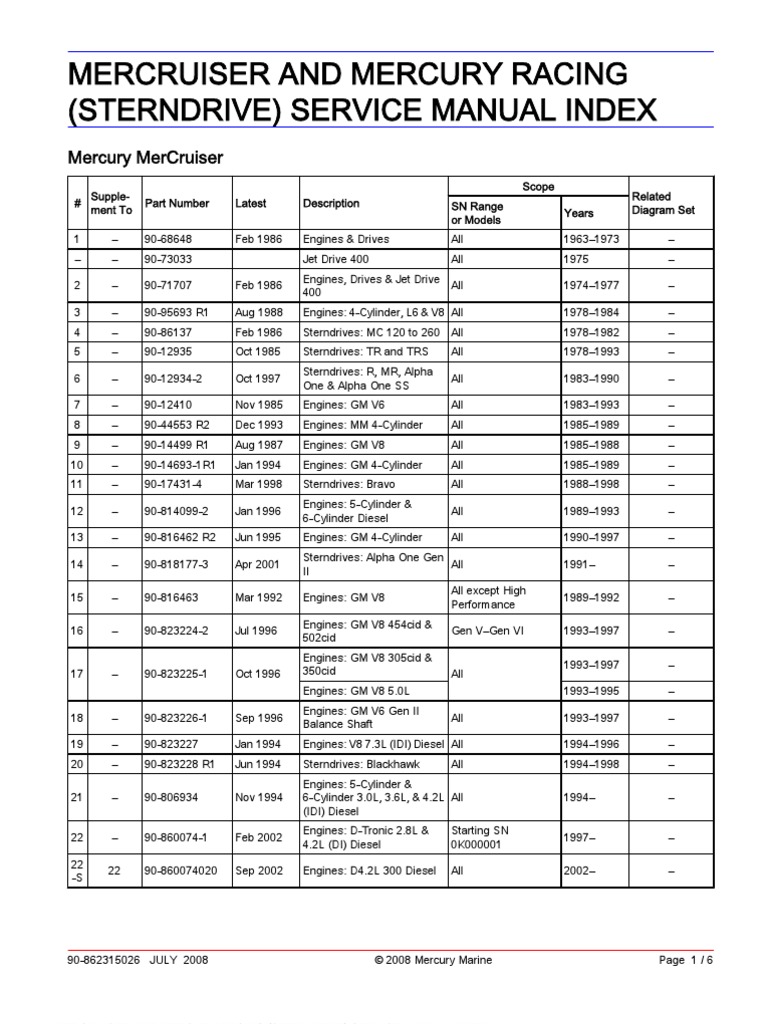 1988 Mercruiser V8 5 0l Manual - DOWNLOAD MerCruiser Online Factory Service Repair Manuals PDF Mercruiser GM V8 454 cid 7.4L 502 cid 8.2L Service Manual. Service Manual Application: Gen. VI. [Online Books] Free Download 1988 mercruiser v8 5 0l manual.PDF [Online Books] 88 1988 gmc c1500 condenser 5. 0l v8 305cid - car May 17, 2013 A basic analysis of choosing issues in 88 1988 Gmc C1500 Condenser 5.0L V8 305Cid.. 2001-2006 MerCruiser Repair Manual 5.0L 5.7L 6.2L 2001-2008 MerCruiser Repair Manual 4.3L MPI All repair manuals are in simple PDF format and delivered in PDF format, for easy viewing..Similar manuals: Mercruiser Stern Drive 888 225 330 Repair Manual Mercury Mercruiser #4 MCM 120-260 Workshop Repair Manual Mercruiser GASOLINE Engine 5.0L 5.7L 6.2L MPI Service Mercruiser. Mercruiser 5.7 V8 Service Manual MERCURY MERCRUISER 5.0L 5.7L 6.2L MPI SERVICE REPAIR MANUAL #31. tom asus. DOWNLOAD MerCruiser Repair Manual 4 Cylinder V6 V8 Engines 5.7 1988 mercruiser. A high quality PDF service manual for a 1988 MERCURY MERCRUISER 5.7 350 V8 . The repair manual download will show you every nut and bolt on your vehicle and will direct you on every mechanical procedure imaginable..