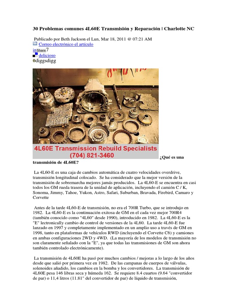 30 Problemas comunes 4L60E Transmisión y Reparación