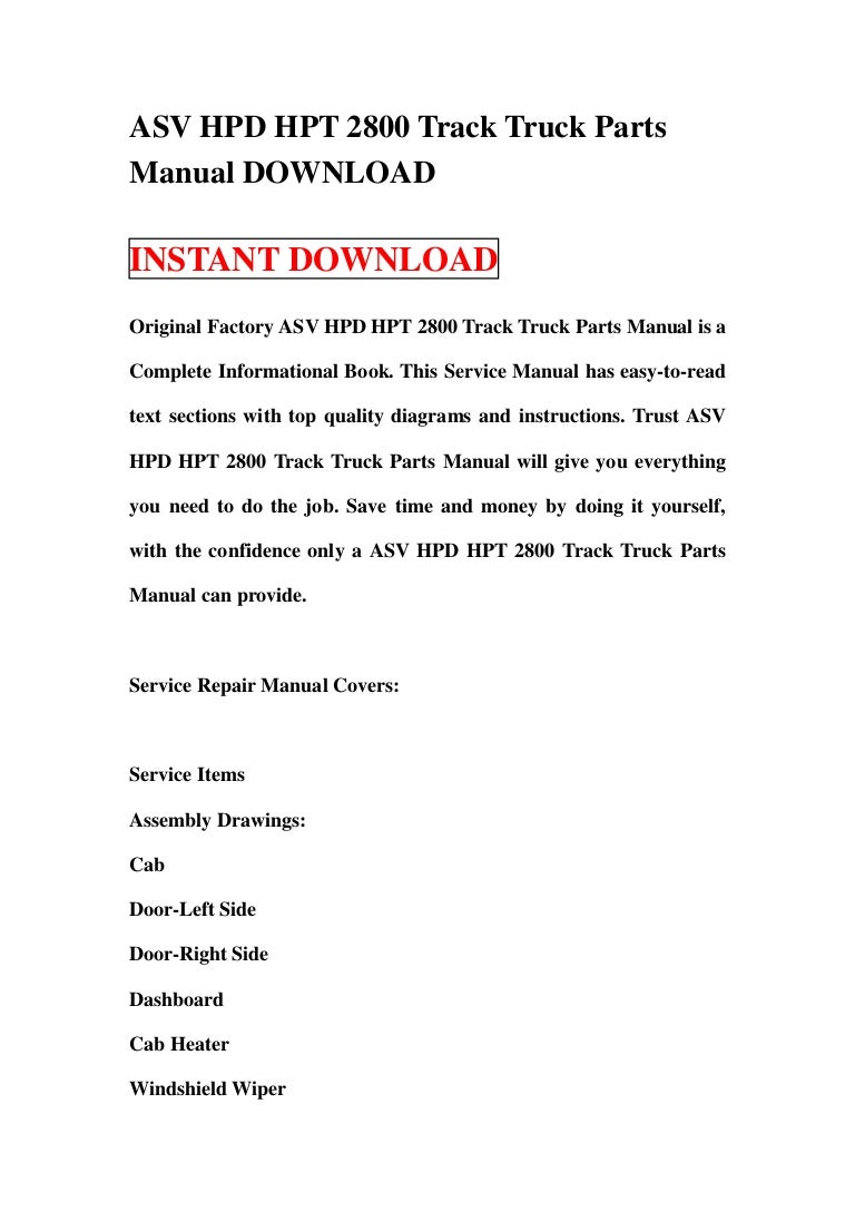 Asv hpd hpt 2800 track truck parts manual download