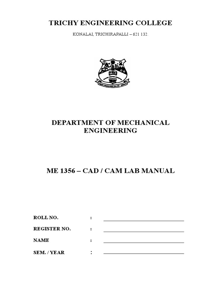 Cad Cam Cae Lab Manual 13-14 | Printer (Computing) | Computer Aided ... Cad Cam Cae Lab Manual 13-14 | Printer (Computing) | Computer Aided Design