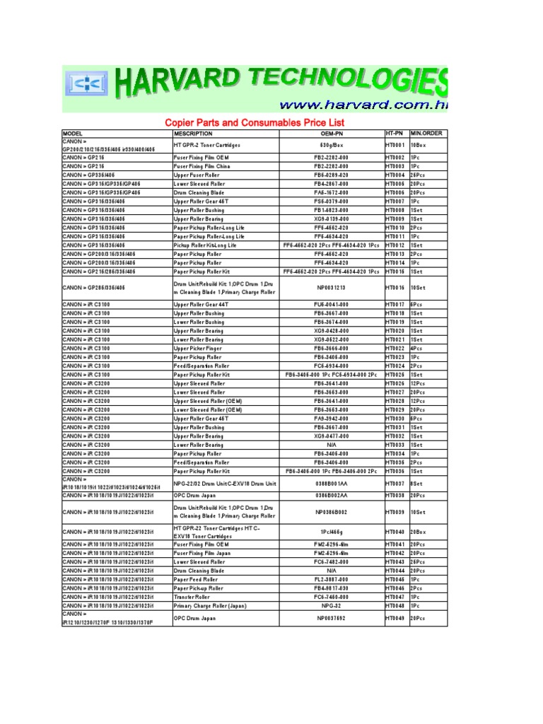 Copier Parts Price List | Office Equipment | Mechanical Engineering