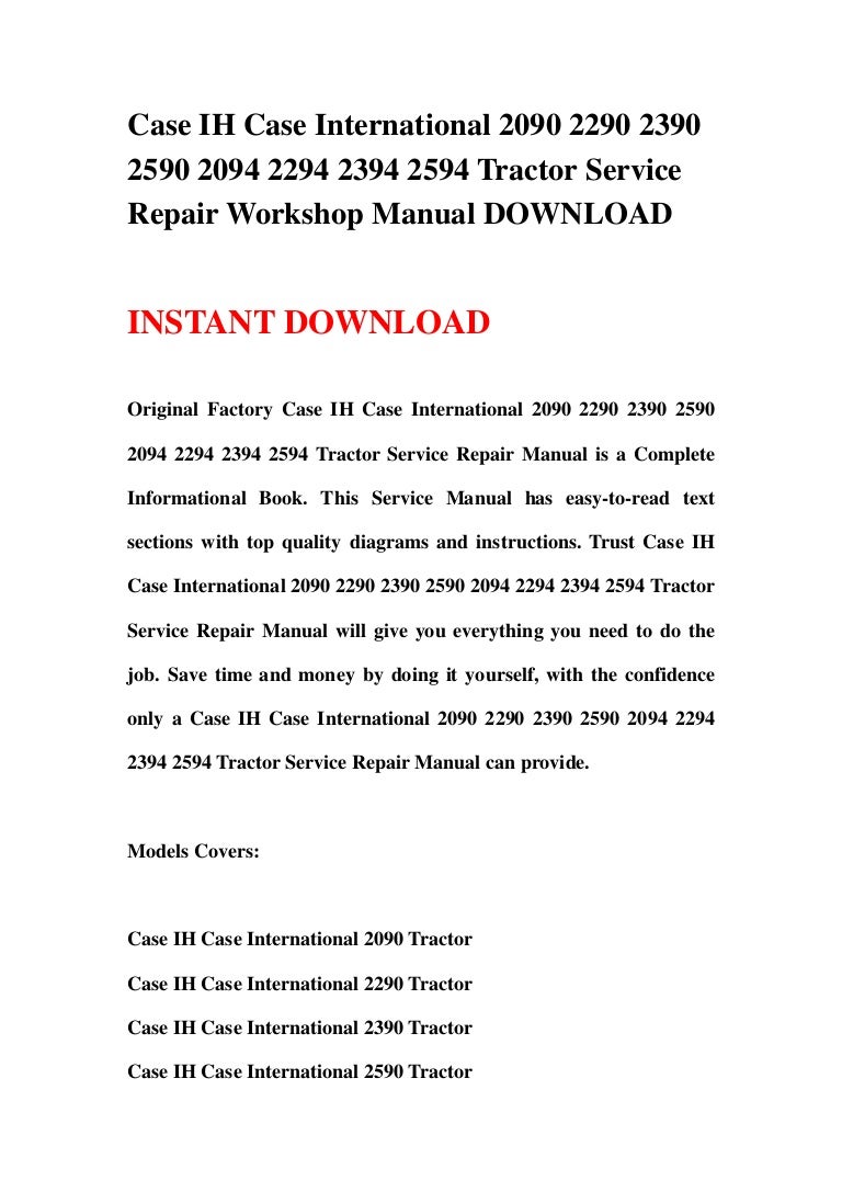 Case International 2090 2094 2290 2294 2390 2394 2590 2594 Tractor ... Case International 2090 2094 2290 2294 2390 2394 2590 2594 Tractor Repair Manual