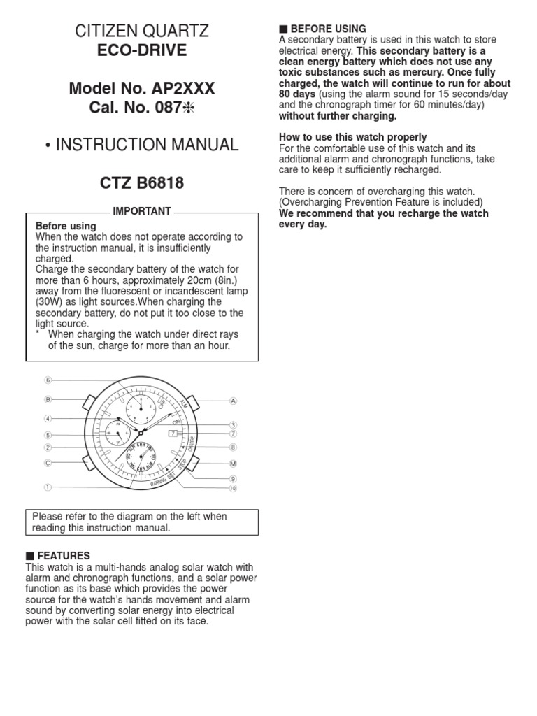Manual for Ecodrive Model 0870 | Watch | Rechargeable Battery