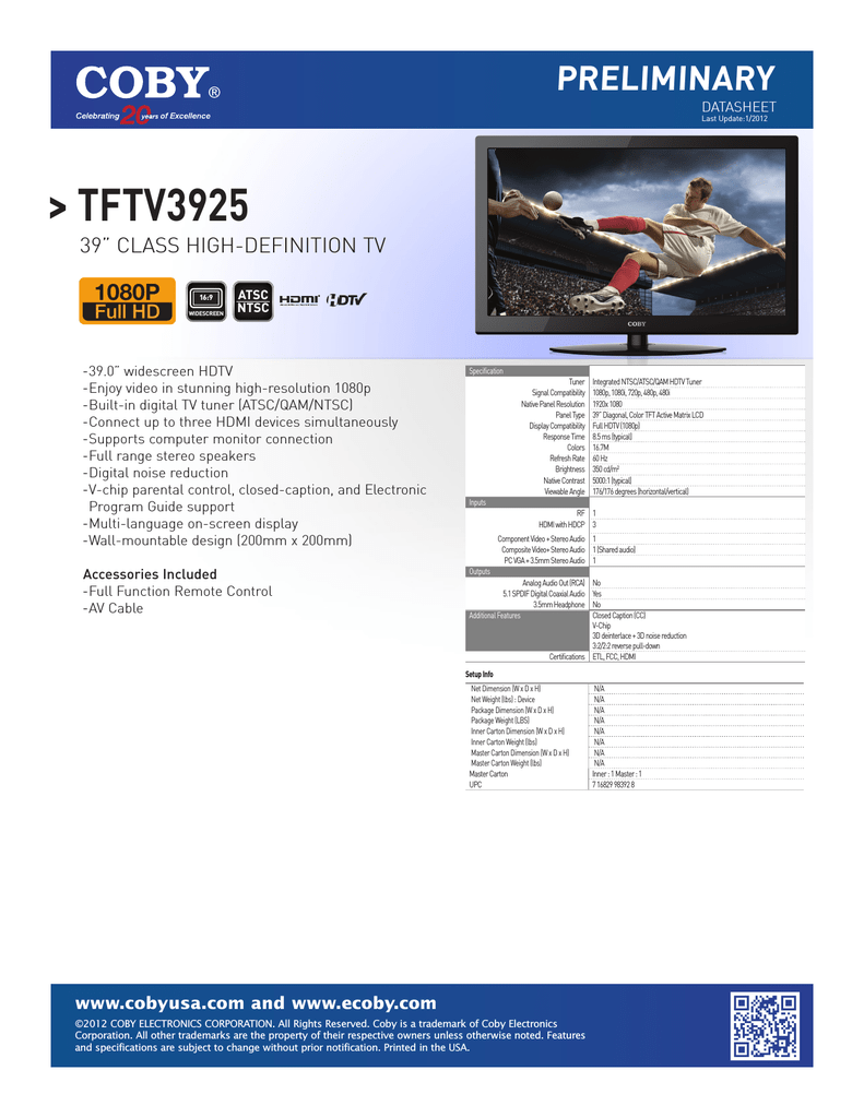 Coby TFTV3925 LCD TV | manualzz.com