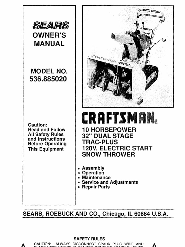 Sears Craftsman 536.886531 : Dual Stage Snow Thrower Owner's ...