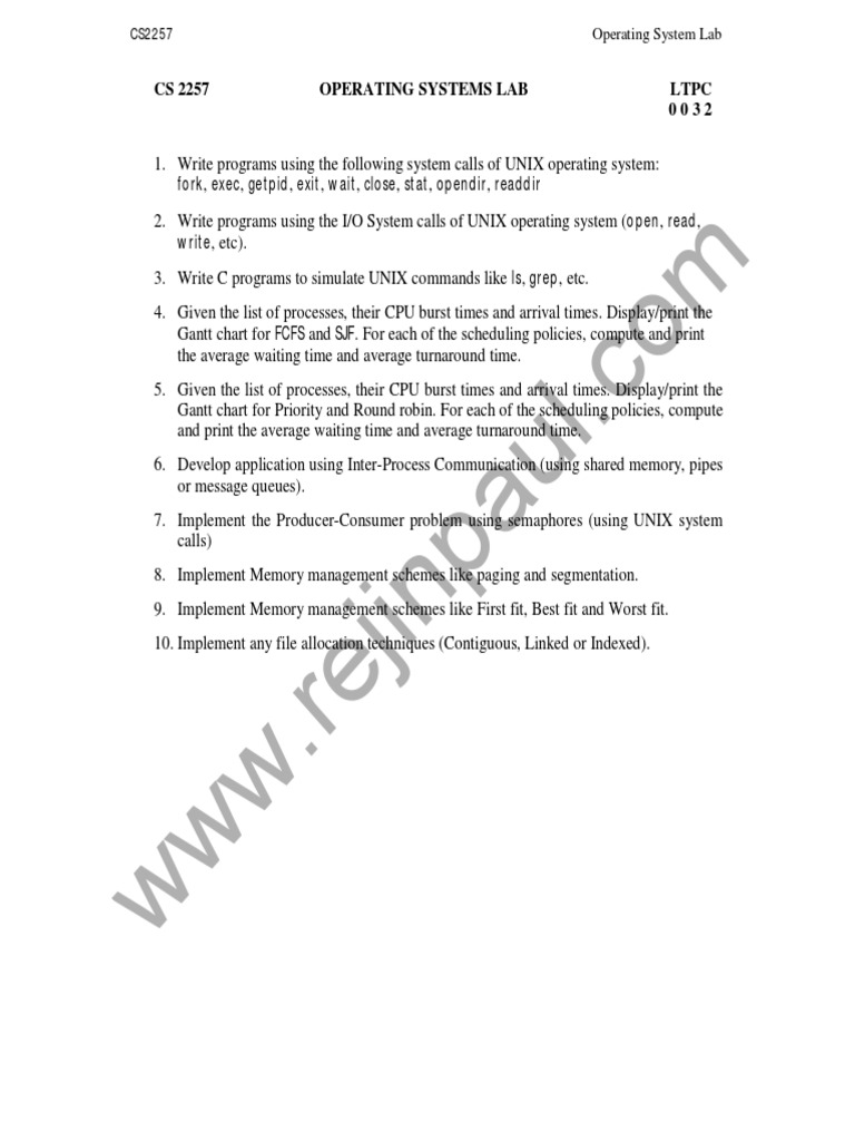CS2257 Operating System Laboratory Lab Manual - CS2257 Operating System Laboratory Lab Manual. rajsathya V.I.P Team. Posts: 282 Threads: 89 Joined: Oct 2012.