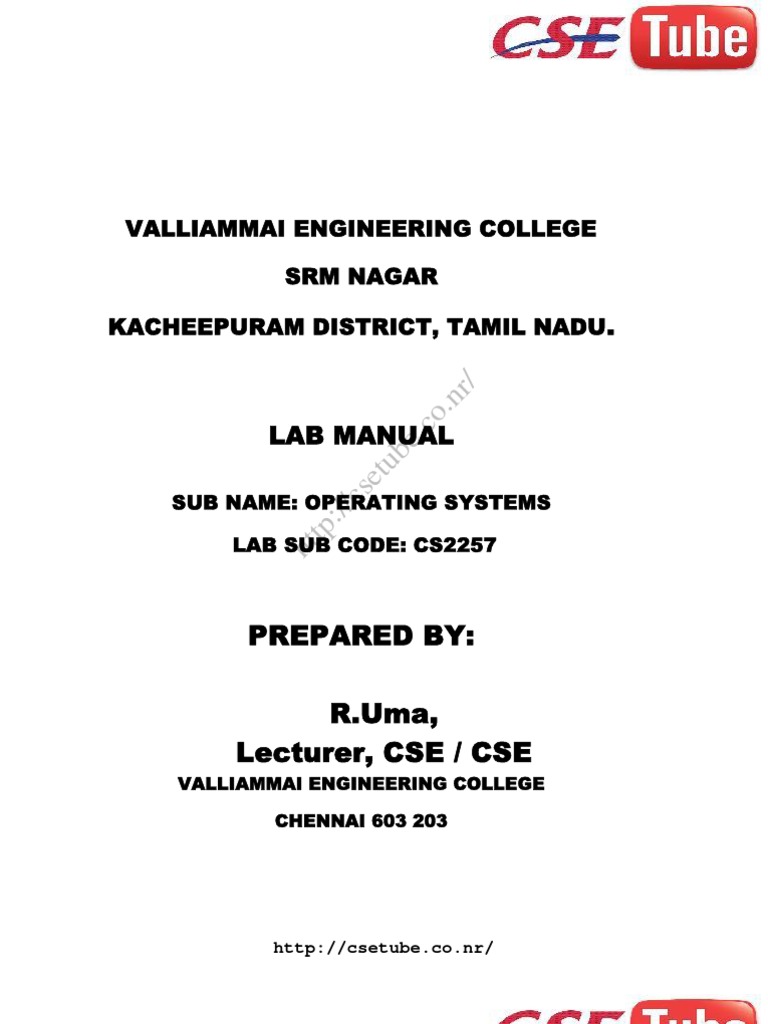 System Software Lab Manual For Cse Anna University Download Anna University Operating Systems Lab Manual from freshupdates.in. CS2257 OPERATING SYSTEMS LAB MANUAL COMMON TO CSE & IT dpt's Anna Lab Manual. CS2257Operating System Lab CS 2257 OPERATING SYSTEMS LAB LTPC 0032 1. Write programs using the following. And CS 2257 Operating Systems Lab - CS2257 OS Lab Manual - CS2257 GE2115 Computer Practice Laboratory - 1 - GE2115 Lab Manual - GE2115 Manual.pdf (4.09..