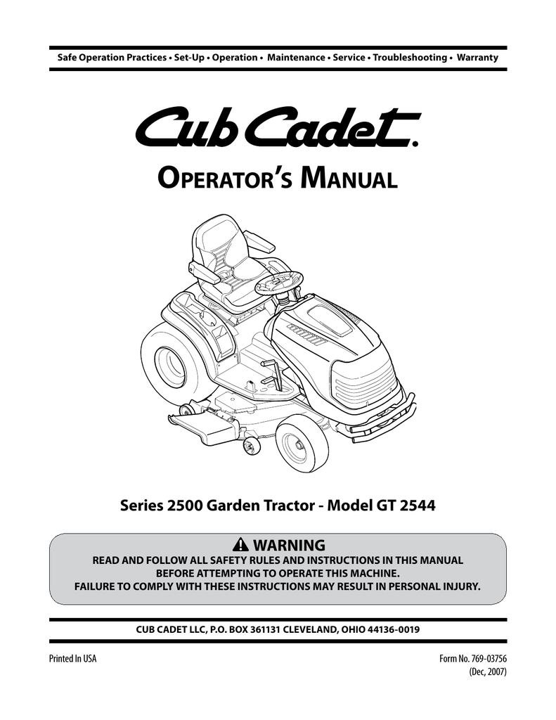 Cub Cadet Gt 2544 Manuals - View and Download Cub Cadet GT 2544 operator's manual online. 2500 Series. GT 2544 Lawn Mower pdf manual download. Also for: Gt 2544.. View and Download Cub Cadet GT 2544 operator's manual online. GT 2544 Tractor pdf manual download.. Find a Cub Cadet Zero Turn Lawn Mower from our innovative selection of award winning Riding Lawn mowers with zero-turn technology.Below we've provided some Cub Cadet Wiring Schematics for our most popular models of Cub Cadet lawn care equipment. These schematics are for reference purposes only - when you are ready to purchase a specific part, please type that number into the search box above.. Lawn Tractors. All-season lawn tractors offer the power and versatility to handle lawns and a whole lot more..