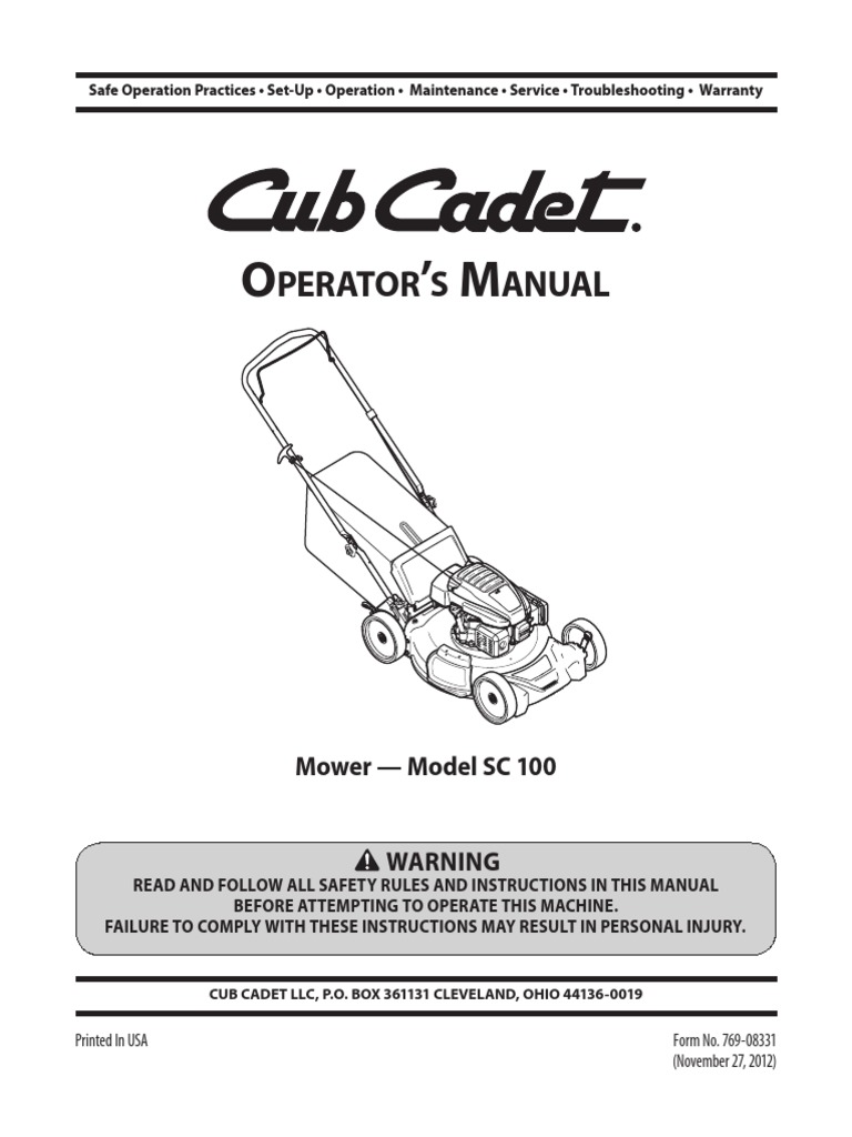 Cub Cadet SC100 Manual | Mower | Internal Combustion Engine