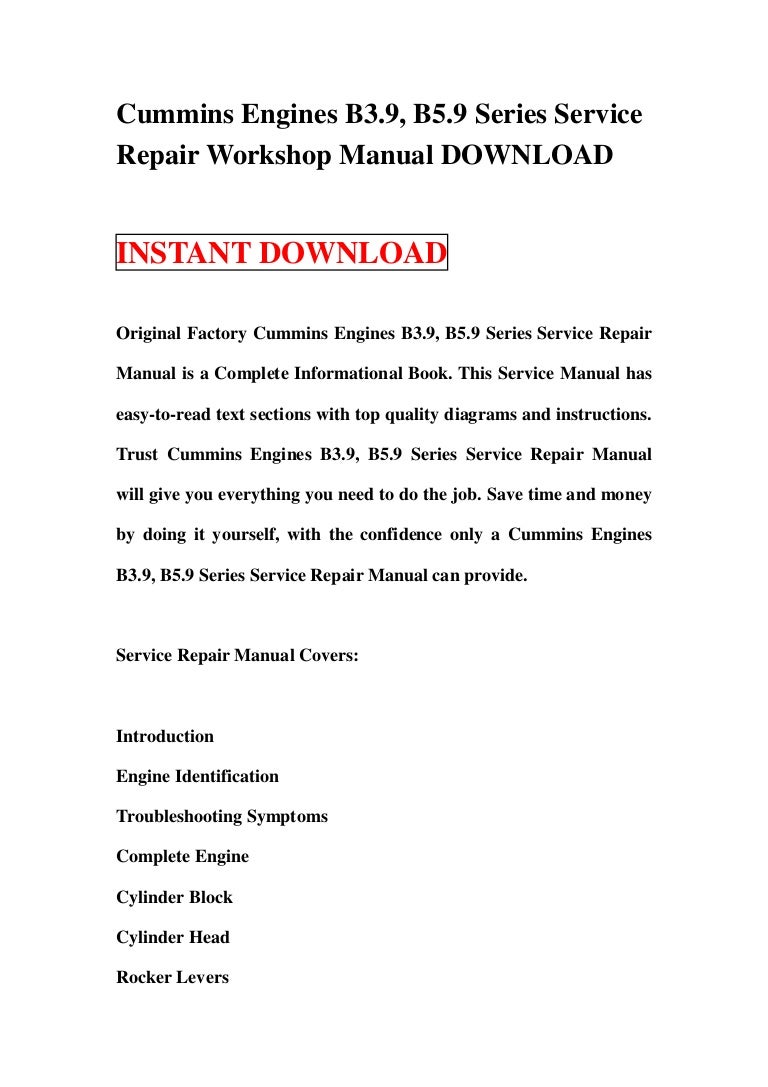 Cummins Engines B3.9, B5.9 Series Service Repair Workshop Manual DOWN…