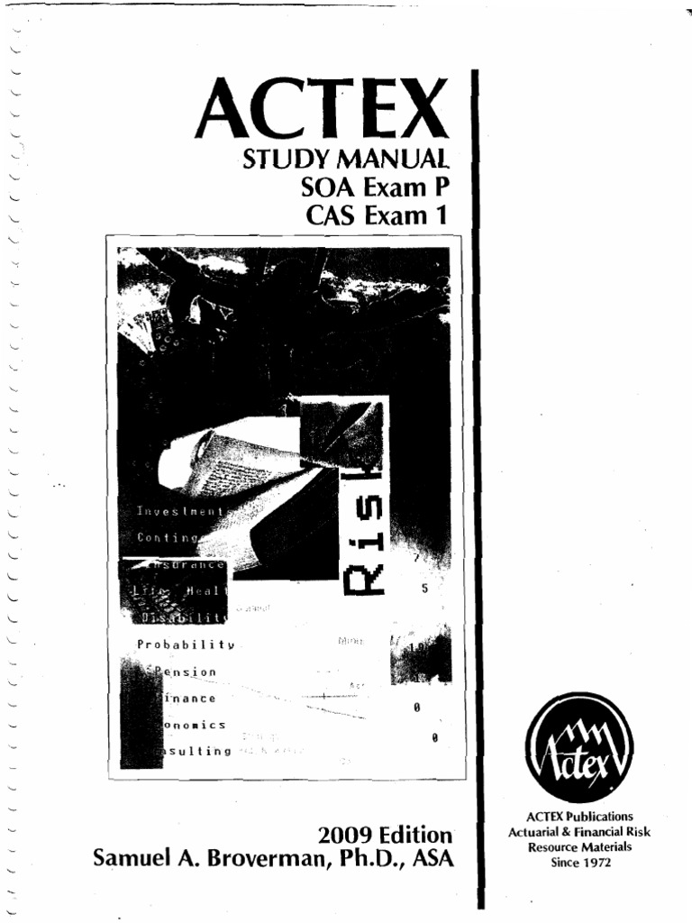 Save this Book to Read actex study manual soa exam p cas exam 1 2009 edition PDF eBook at our Online Library. Get actex study manual soa exam p cas exam 1 2009 edition PDF file for free from our. ASM has been helping students prepare for actuarial exams since 1983. We offer study materials for Exams P, FM, IFM, LTAM, STAM, SRM , PA, MAS-I & II and EA-1, EA-2F and EA-2L, written by an outstanding team of authors.. ACTEX STUDY MANUAL for FM: The ACTEX Study Manual for the Society of Actuaries’ Exam FM is comprehensive and is written in an easy-to-understand style, providing thorough explanations of all the Exam FM topics, from the basic material to the most difficult topics. Concepts are introduced in a clear way so that students can quickly understand.