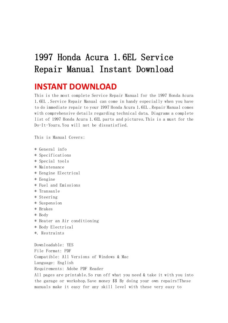 1997 Honda Acura 1.6 El Service Repair Manual Instant Download