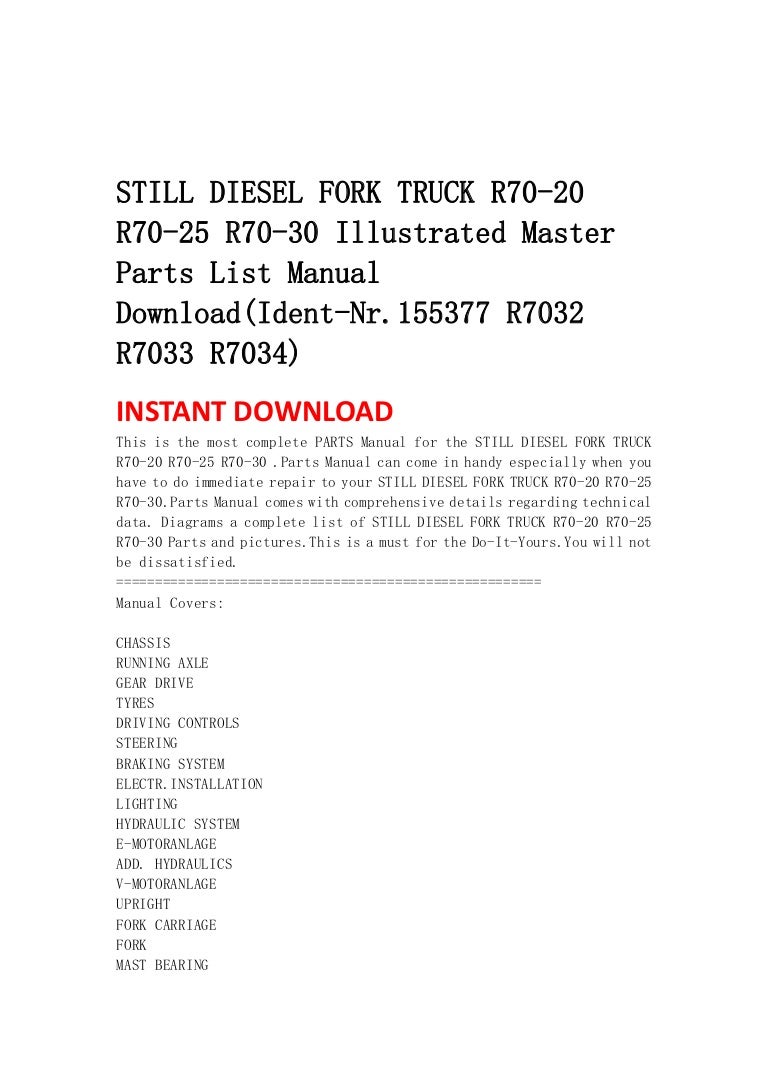 Still Diesel Fork Truck R70 20 R70-25 R70-30 Illustrated ...