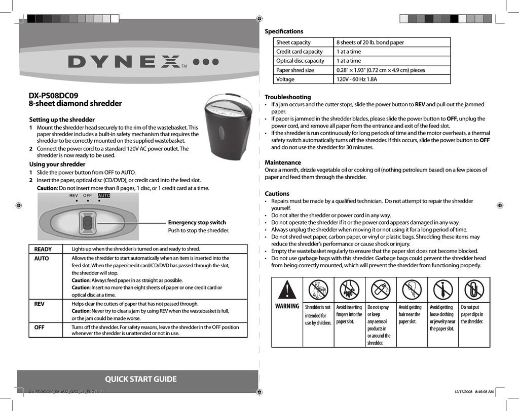 Dynex DX-PS08DC09 Paper Shredder User Manual | manualzz.com
