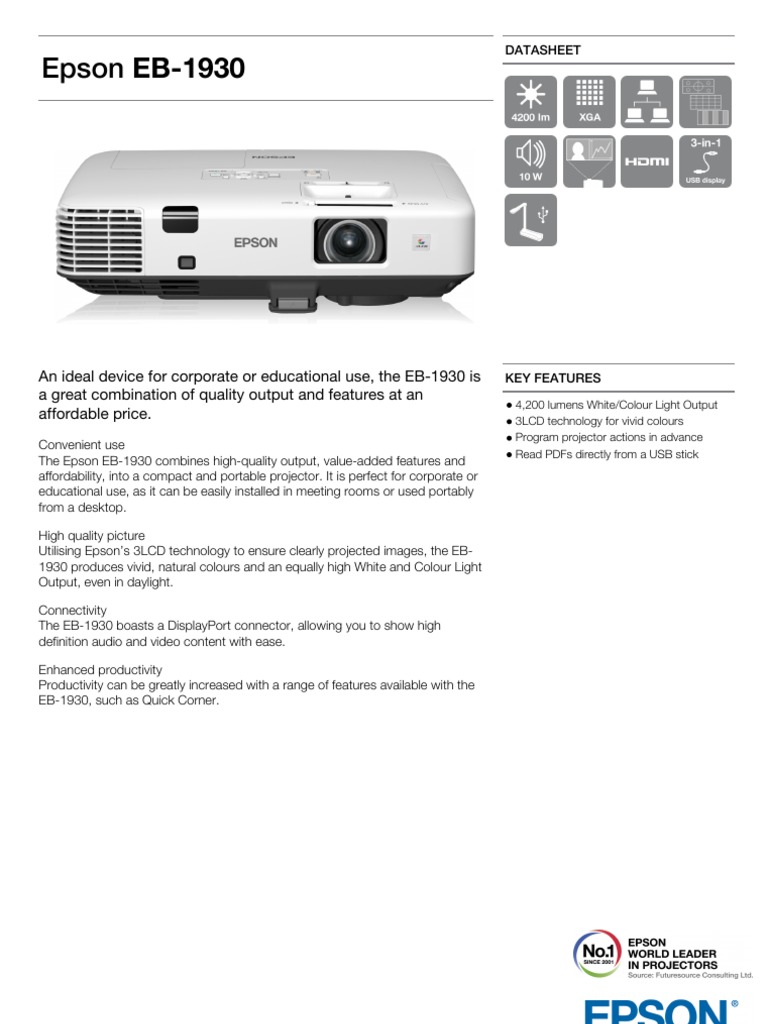 Epson EB 1930 Product Brochure | Rgb Color Model | Usb
