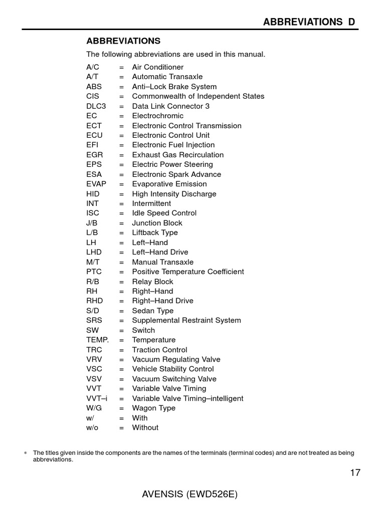 Toyota Avensis 2003-2007 Electrical Wiring - All