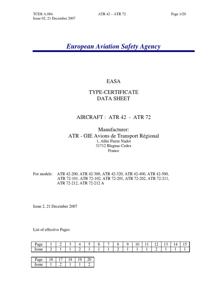 EASA - TCDS-A.084 - ATR42 & 72 | Aviation | Aerospace Engineering