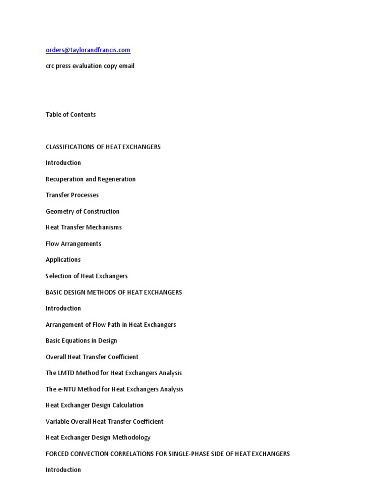 Table of Contents-Sadik Kakac | Heat Exchanger | Heat Transfer