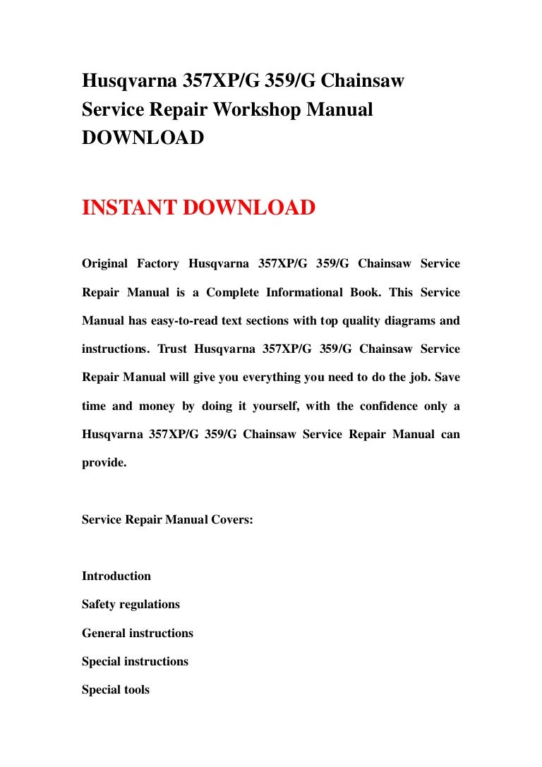 Husqvarna 357XP/G 359/G Chainsaw Service Repair Workshop Manual DOWNL…