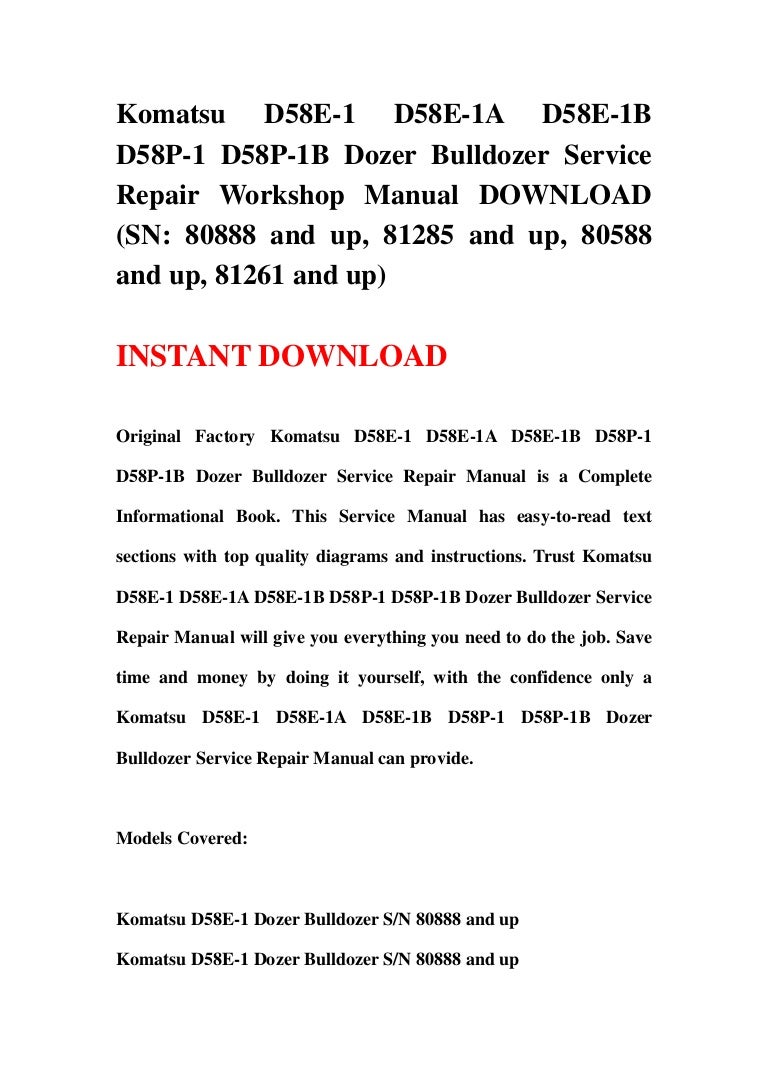 Komatsu D58E-1 D58E-1A D58E-1B D58P-1 D58P-1B Dozer Bulldozer Service…