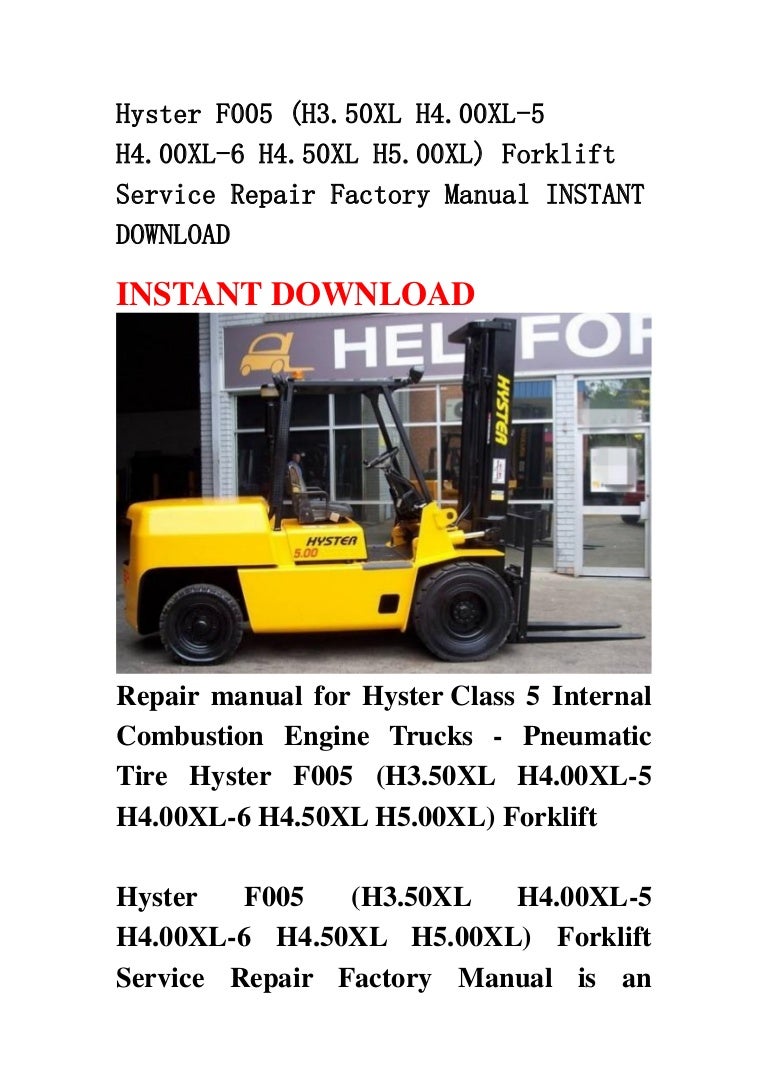 Hyster f005 (h3.50 xl h4.00xl 5 h4.00xl-6 h4.50xl h5.00xl) forklift s…