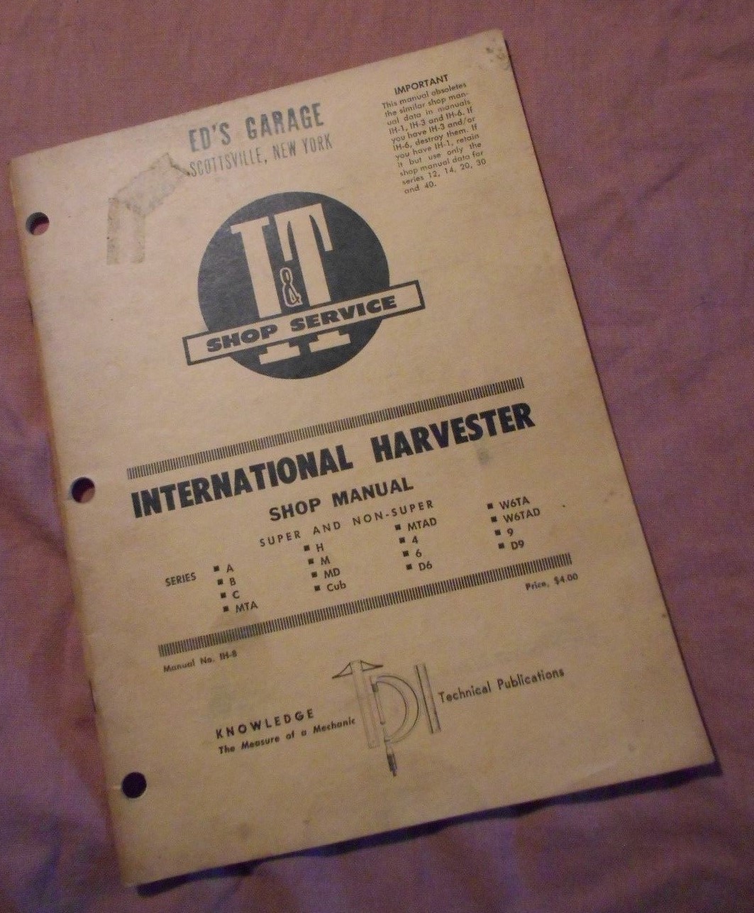 Ihc Super H Shop Manual - Helpful information and resources on Case tractors from SSB Tractor, a leading provider of tractor parts, manuals, implements and toys. Irwin Allen Estate Auction Saturday, September 22nd, 2018 10 A.M. Location: 30 miles east of Judith Gap, Montana . VINTAGE VEHICLES 1929 Ford Model A Special coupe, ground-up restoration, center balanced engine, rumble seat, beautiful condition!. sundsbak fall equipment consignment auction. minot, nd: n. d. state fair midway wednesday, october 24, 2018. 10:30 a. m. (click here for pictures).Search Auctions by Manufacturer, Model, Category and more at AuctionTime.com.. C.R. Leonard Plumbing & Heating's Informational Website. On this site you will find our current and completed projects listing. We also have our contact and safety information.. The compressed-air-operated MV6830 offers professional grade brake & clutch bleeding performance. This compact yet powerful unit bleeds up to 2 quarts (1.9 liters) per minute, and its simple operation allows clean, quick bleeding of brake & clutch lines..