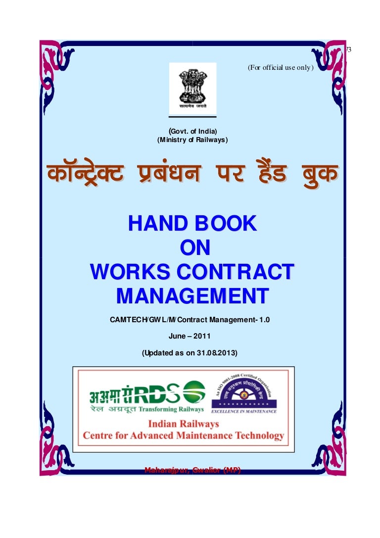 Indian Railway Establishment Manuals Pdf Download - Date Added: 12 Mar 2017 Average Download Time: 2 min. Average Rating: 1; 2; 3; 4; 5 (based on 11245 customer reviews) download. Title: Govt 2305 Chapter 1 Pdf Ebook Author: Islamic Texts Society Subject: Govt 2305 Chapter 1 Keywords: Download Books Govt 2305 Chapter 1 , Download Books Govt 2305 Chapter 1 Online , Download Books Govt 2305 Chapter 1 Pdf , Download Books Govt 2305 Chapter 1 For Free , Books Govt 2305 Chapter 1 To Read , Read Online Govt 2305 Chapter 1. c1731006c4 Free Download indian railway white manual Epub (A White Paper) - Indian Railway . station limits, which is or may be already be occupied by another train or loco.September 12, 2009 (A)LIST OF SIDINGS OVER EASTERN RAILWAY AND NAME OF SERVING STATION Name of the Siding Alpha Code Serving Station Remarks ASANSOL DIVISIONIndian Railway.Indian Railways establishment rules are detailed in Indian Railways Establishment codes, Manuals and any changes will be notified through Gazette as well as Circulars from Railway Board. Some of the extracts of the establishment rules are reproduced on this site.. To reserve or cancel a reservation in the Indian Railways you need to download and submit this form to the Indian Railway Department. This form can only be used in India.. DOWNLOAD RAILWAY ESTABLISHMENT RULES AND LABOUR LAWS 2001 22ND EDITION railway establishment rules and pdf The Railway Board decided to revise all the Railway Codes and manuals with a view to symplifying them and bringing them up-to-date. The revision of the Indian Railway Establishment Manual was accordingly undertaken. INDIAN RAILWAY ESTABLISHMENT MANUAL Indian Railway Establishment Manuals.
