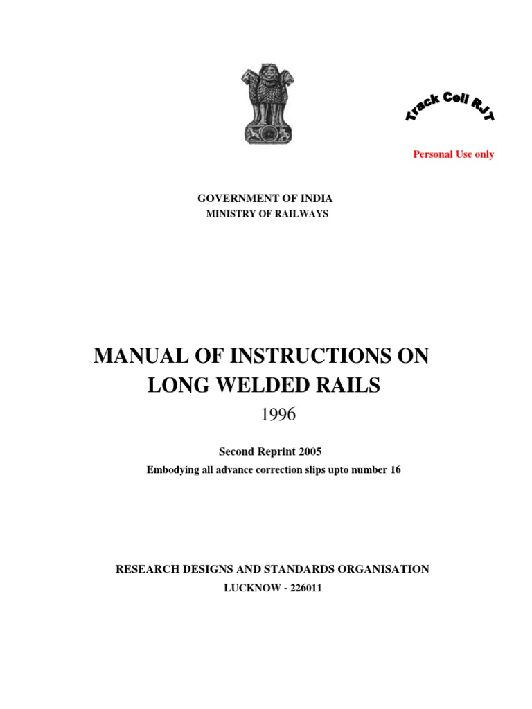 LWR MANUAL UPDATED UPTO CS 16.pdf | Track (Rail Transport) | Thermometer