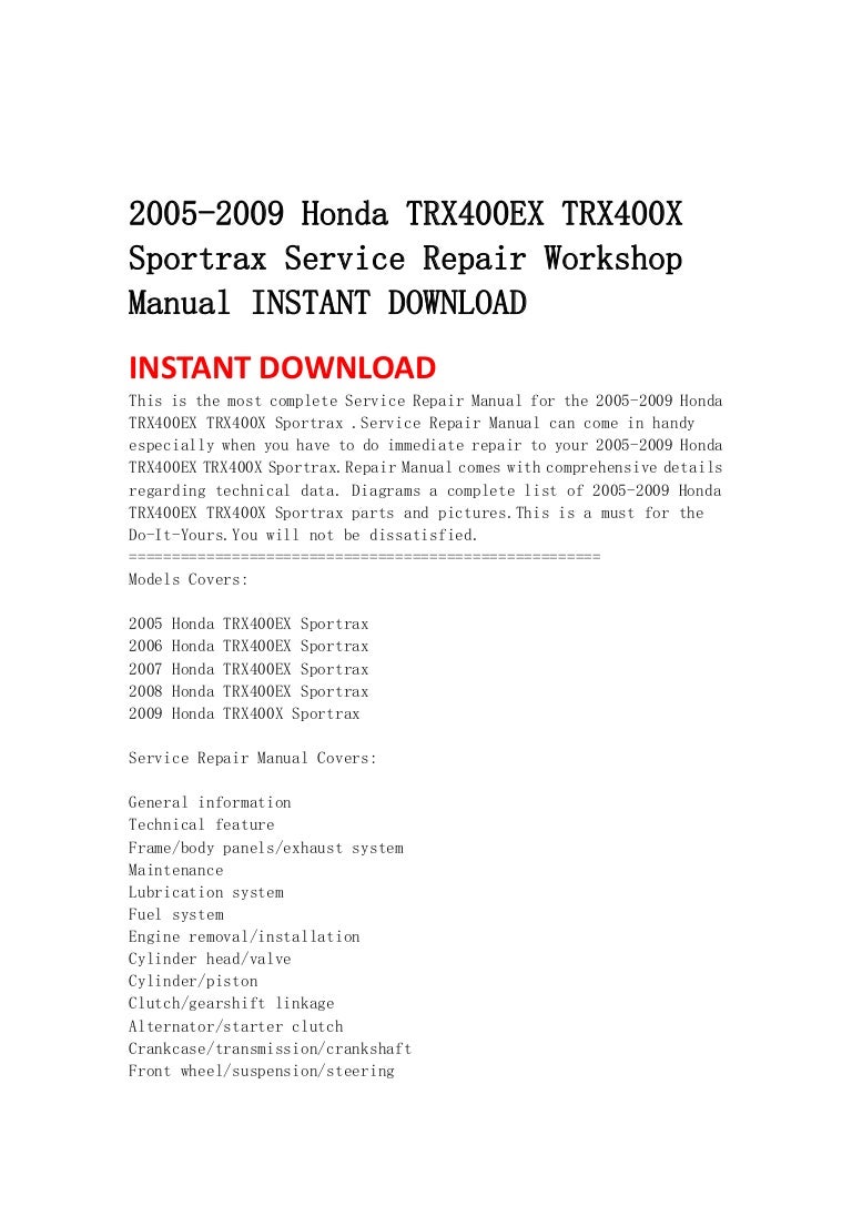 2005 2009 honda trx400 ex trx400x sportrax service repair workshop ma…