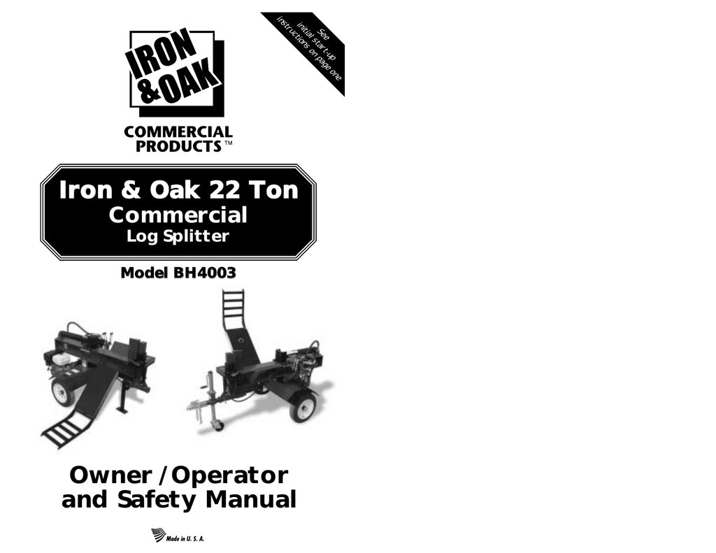 Iron And Oak 26 Ton Log Splitter Manual - The Boss Industrial dual action ED8T20 electric wood splitter has two 5 inch wedges and a length capacity of 20.5″. No waiting for return of the hydraulic ram, just put in another log. This 25-Ton Cub Cadet Log Splitter saves you time, effort and money with 25-Ton of ram force to split a 25 in. log every 19 seconds. With hydraulic fluid already included and tested at the factory this is one hardworking machine.. The Champion Power Equipment 100424 27-Ton Horizontal/Vertical Full Beam Log Splitter offers relief from the back-breaking work of splitting logs..Find helpful customer reviews and review ratings for Swisher LSEB125341350 34-Ton Log Splitter with Electric Start at Amazon.com. Read honest. I bought a 28 ton Huskee log splitter on June 25, 2010 at Tractor Supply and two weeks later the spider gear blew out. The folks at Tractor Supply were great with support and had trouble getting my model repaired so they gave me another one.. The Brave PRO BRPBC26HE 26" Brush Cutter can tackle large areas in no time and maneuvers tough terrain with ease. This unit is ideal for thick field grass and overgrown brush..