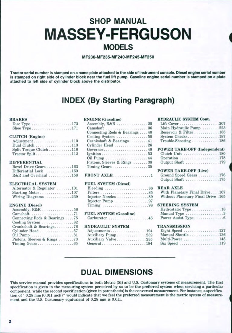 Massey Ferguson MF 250 Tractor Service Repair Manual