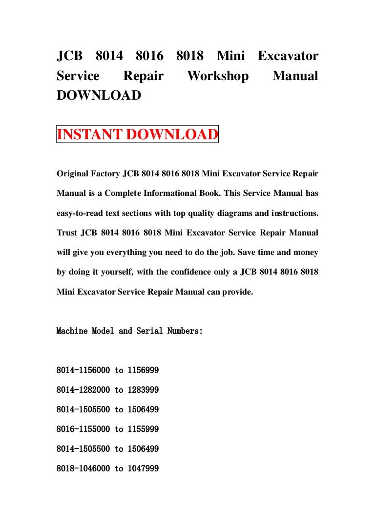 MNL-9867] Jcb 8014 8016 8018 8020 Mini Excavator Service Repair ... Jcb 8014 8016 8018 8020 mini excavator service repair workshop manual download by brown jon -