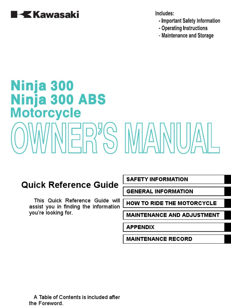 2013 Kawasaki Ninja 300 Owners Manual | Gasoline | Vehicle Parts