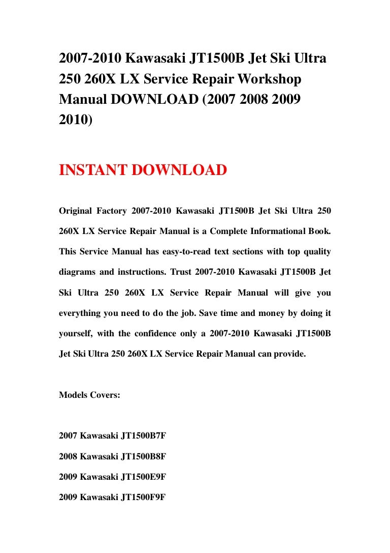 2007 2010 kawasaki jt1500 b jet ski ultra 250 260x lx service repair …