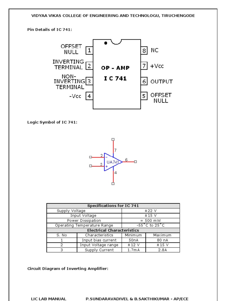 LIC Lab Manual | Operational Amplifier | Amplifier