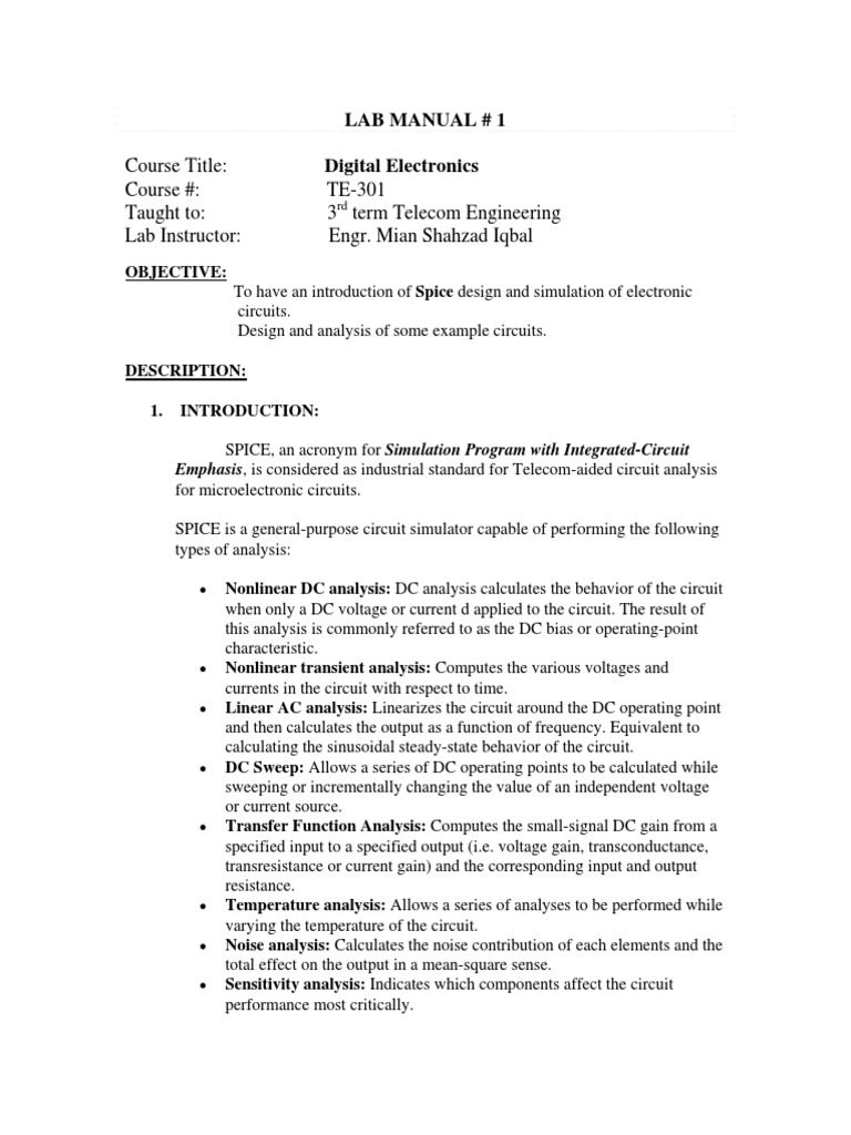 labs-LAB MANUAL 01.pdf | Spice | Electrical Network