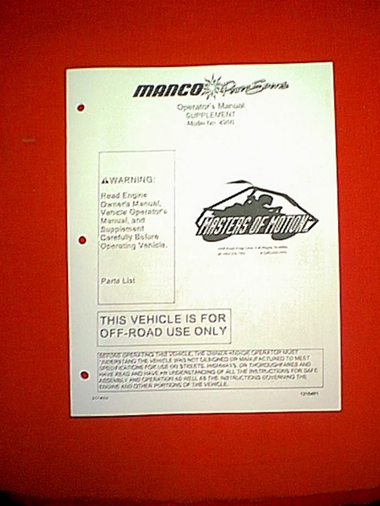 Details about MANCO GO CART MODEL # 495B PARTS MANUAL 01/14/04