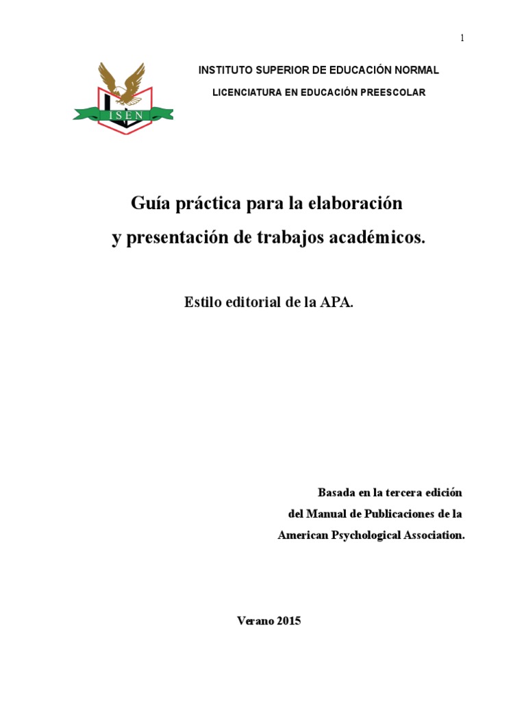 Manual De Estilo Apa 2015 - A Complete Resource for Writing and Publishing in the Social and Behavioral Sciences. The rules of APA Style ®, detailed in the Publication Manual of the American Psychological Association, offer sound guidance for writing with simplicity, power, and concision.. Las Normas APA es el estilo de organización y presentación de información más usado en el área de las ciencias sociales. Estas se encuentran publicadas bajo un Manual que permite tener al alcance las formas en que se debe presentar un artículo científico.. Las Normas APA es el estilo de organización y presentación de información más usado en el área de las ciencias sociales. Estas se encuentran publicadas bajo un Manual que permite tener al alcance las formas en que se debe presentar un artículo científico..Una cita es la expresión parcial de ideas o afirmaciones incluidas en un texto con referencia precisa de su origen o fuente y la consignación dentro de la estructura del texto.. Normas APA 2019. Normas APA actualizadas y Formato APA (sexta edición). Explicación detallada de cómo referenciar, citar, realizar documetos , ensayos y tesis.. Las imágenes utilizadas en cualquier trabajo al igual que cualquier otra información, debe ser citada adecuadamente. De acuerdo al manual de Estilo APA (6ª ed. en Inglés o 3ª ed. en español) se pueden citar las imágenes de la siguiente forma dentro del texto y como parte de la Bibliografía..