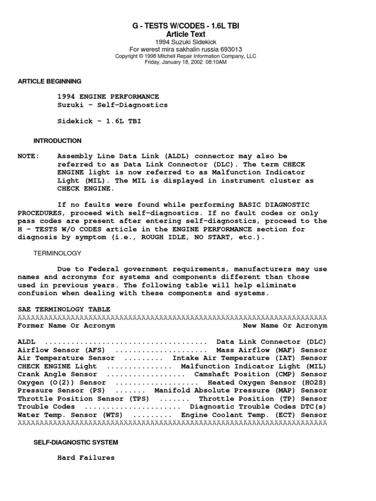 1994 Suzuki Sidekick 1.6L TBI Code Diagnose | Throttle | Ignition System