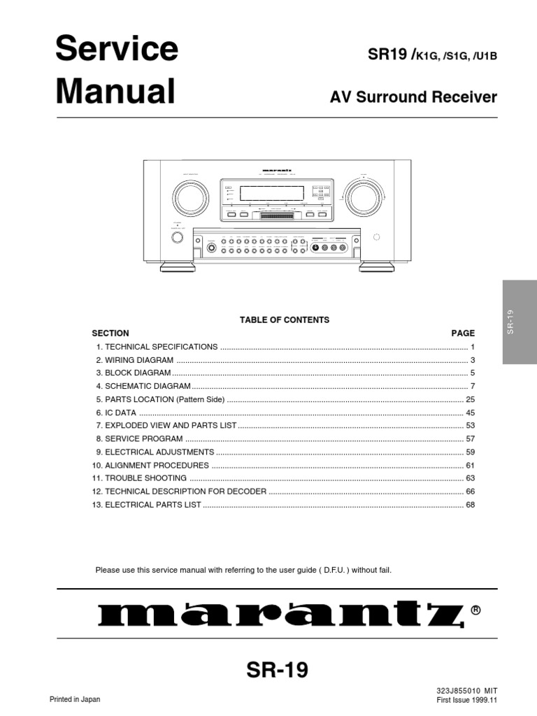 Marantz Sr-19 Service Manual | Sound Production | Television ...