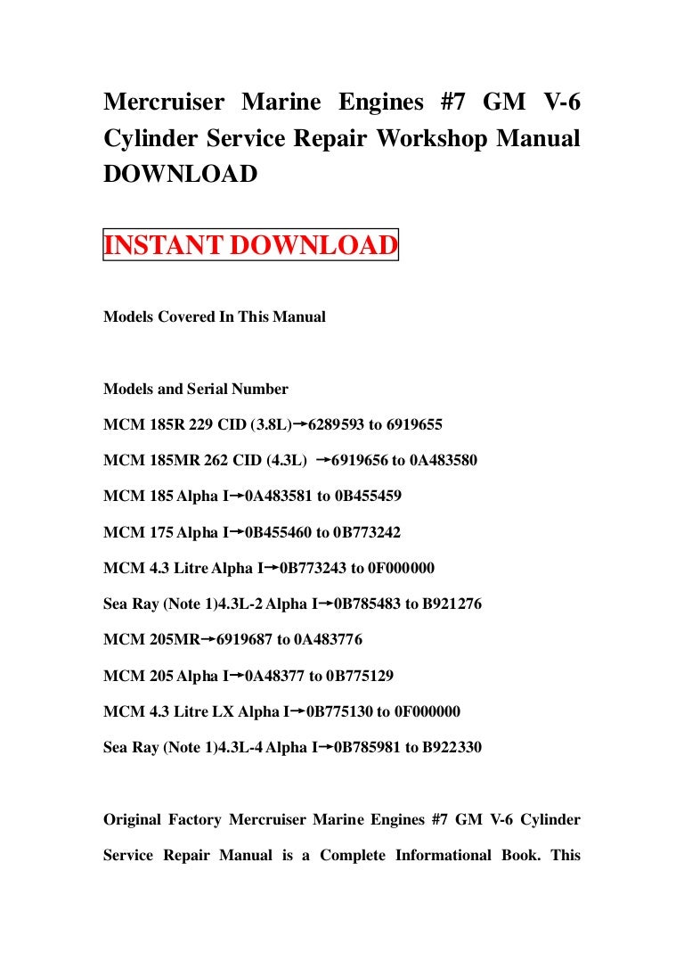 Mercruiser marine engines #7 gm v 6 cylinder service repair workshop …