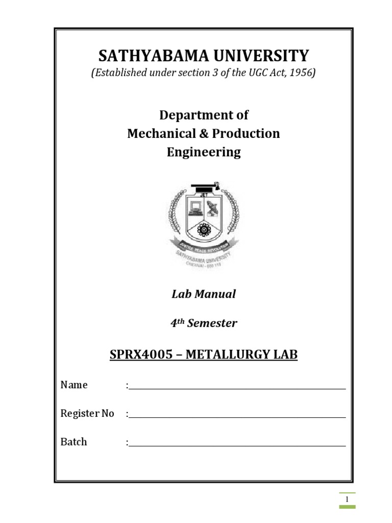 Department of Metallurgical Engineering Foundry Lab Manual | Casting ... Department of Metallurgical Engineering Foundry Lab Manual | Casting (Metalworking) | Personal Protective Equipment