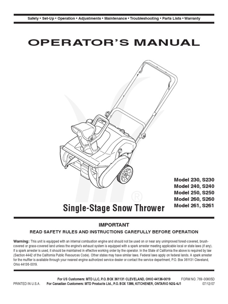 Mt d 240 Snowblower Manual | Internal Combustion Engine | Carburetor