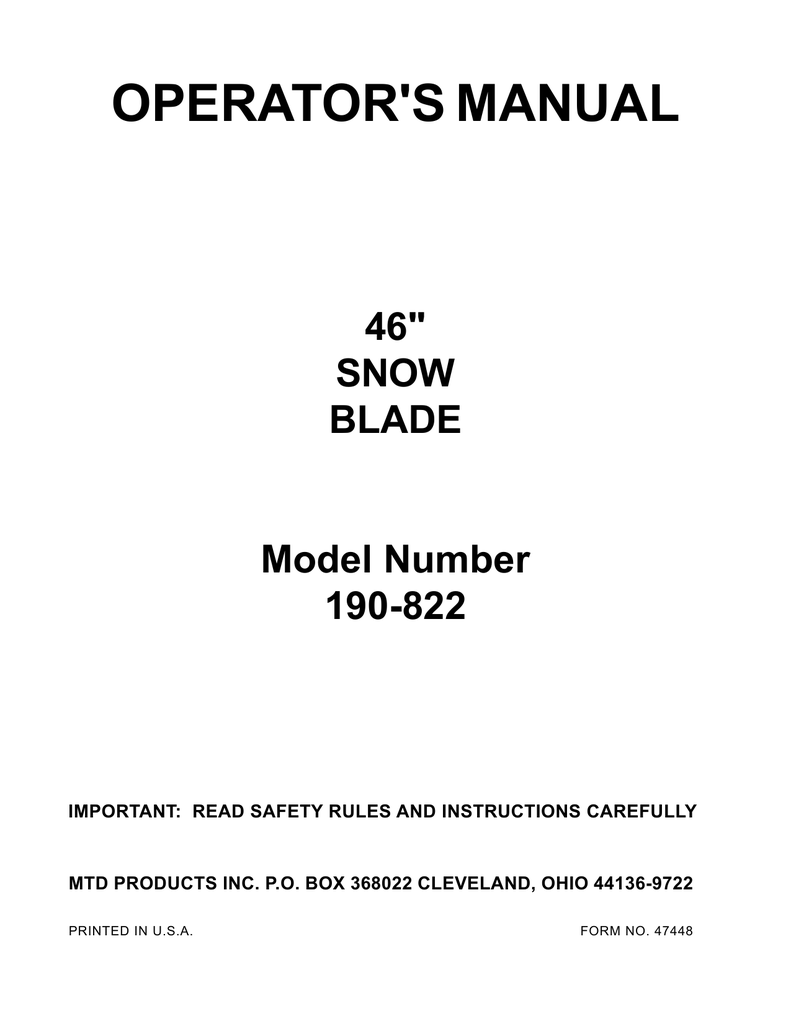 MTD Snow Blower Attachment 190-822 User's Manual | manualzz.com