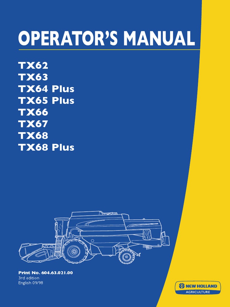 New Holland was founded in 1895 in the Pennsylvania borough of the same name. Known for dependability, New Holland became famous for making a tractor that the owner could perform all the service and repairs themselves using an official New Holland Service and Repair Manual.. View & Download more than 274 New Holland PDF User Manuals, Guides and Instructions. New Holland Owner's Manuals, Operation Guides, and Specifications Preview.. New Holland Combine TX63 TX65 TX66 TX68 Operators Manual is a must have! It’s the very same manual used by certified mechanical in your local factory dealer to ensure your vehicle is serviced and repaired correctly..