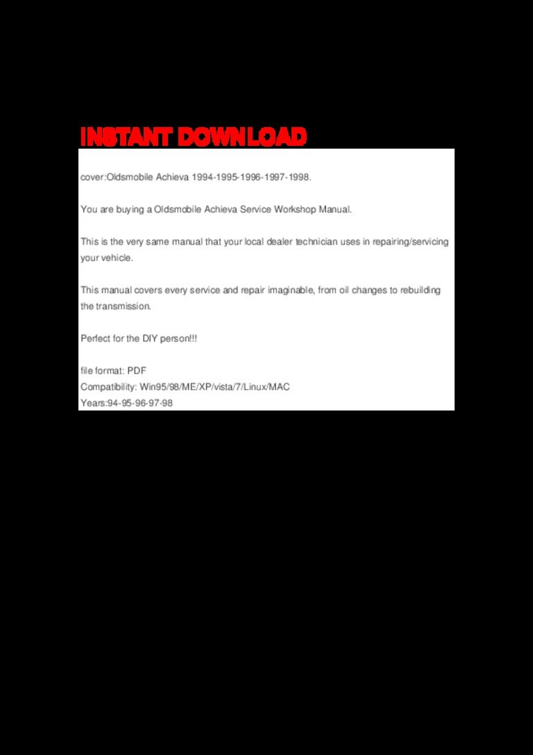 Oldsmobile Achieva Workshop Repair And Service Manual - The Electronic Service Information contained on this CD-ROM or DVD provides instant access to Ford Motor Company's latest, most up-to-date manufacturer repair and service information available, including Workshop, Wiring and Powertrain Control/Emission Diagnosis..