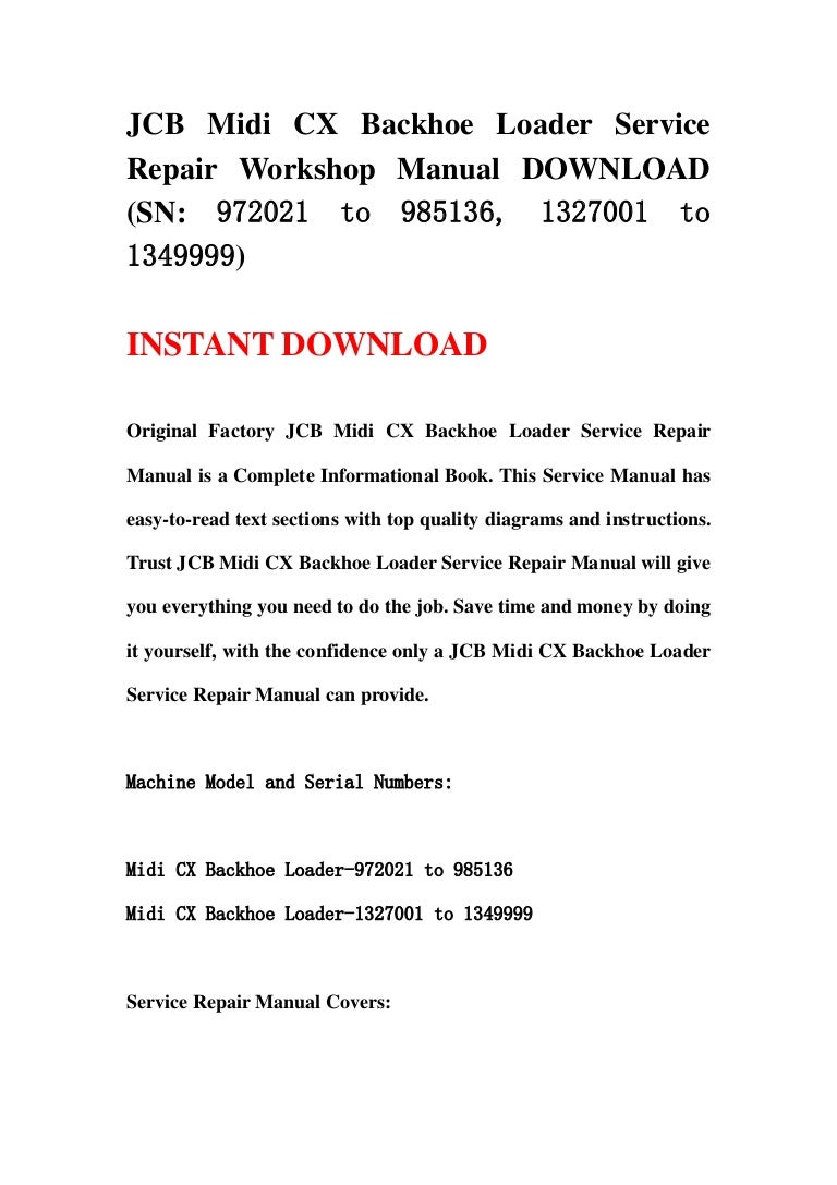 Owner Manual Jcb Midi Cx - JCB 3CX 4X4 Sitemaster Backhoe Digger ideal Self Build or Farm. A really straight looking digger for age in its original clothes. Had new king pin on back actor.. Ontrack Sales : Page 3 - JCB PARTS PERKINS CUMMINS PARTS INGERSOLL RAND REPLACED BY CATERPILLAR GENUINE JCB 1 GENUINE JCB 2 ecommerce, open source, shop, online shopping, store. Testimonial # 5147 of 12815 (View all the 12815 testimonials) "I was about to find the service manual for the copier our church was..Sale Results We send out the sale results notifications in the form of a newsletter within 14 days of the sale taking place. Please follow the link below to register for this service.. Let Your Children Play! JCB Workbench Playset (comes with compact portabel case, play drill, hammer, toy saw, and tools) Bruder Mack Granite Flatbed Truck With Trailer & JCB Loader Backhoe. The 2018 FIFA World Cup was the 21st FIFA World Cup, an international football tournament contested by the men's national teams of the member associations of FIFA once every four years..