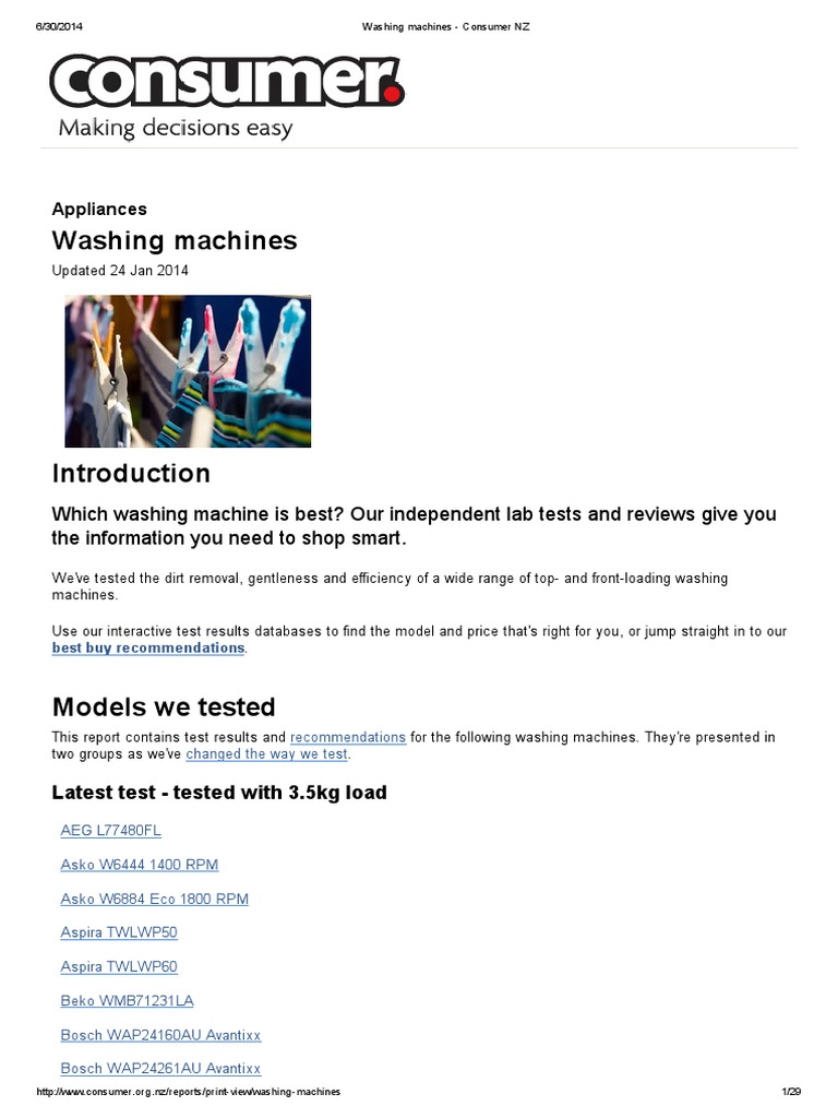 Washing Machines - Consumer NewZ | Washing Machine | Domestic Implements